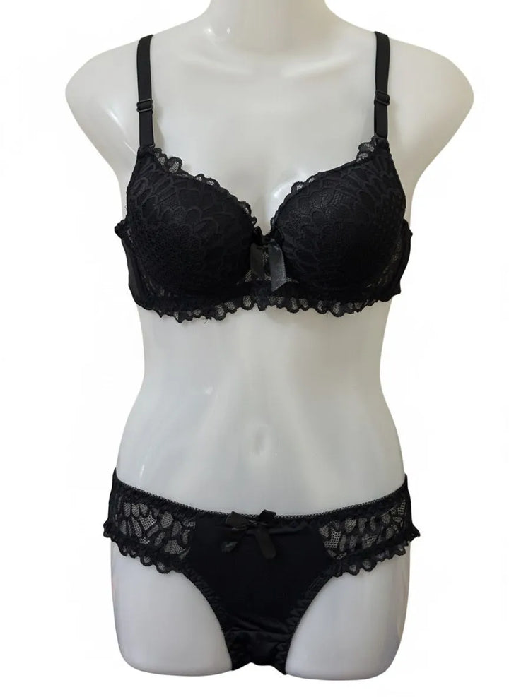 Black Lace Bra and Panty Set for Women